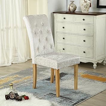 Crushed Velvet Button High Back Roll Top Seat Dining Room Chairs