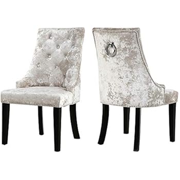 Crushed Velvet Dining Chair With Crystal Buttons And Lion Pull