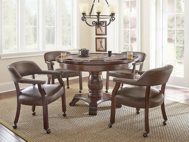 48 Round Dining And Poker Table Convertible 4 Rolling Chairs