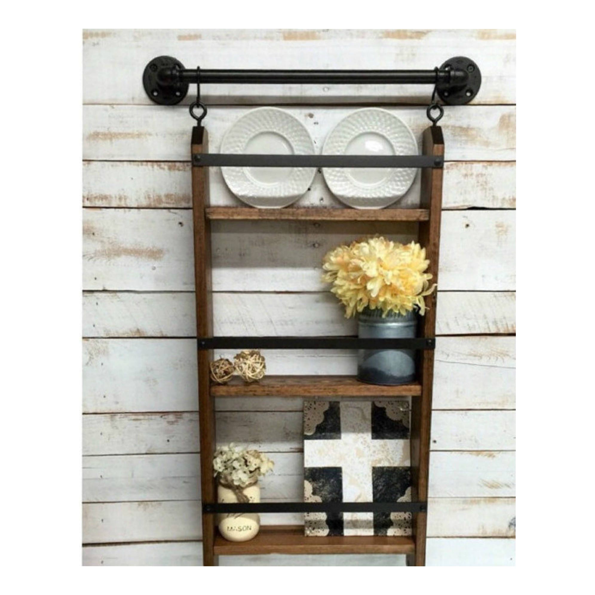 Rustic Ladder Shelf Pipe Furniture Dining Room Shelf Farmhouse Etsy