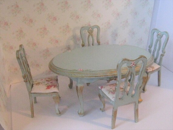 Dollhouse Table Oval Dining Table Four Chairs Duck Egg Etsy