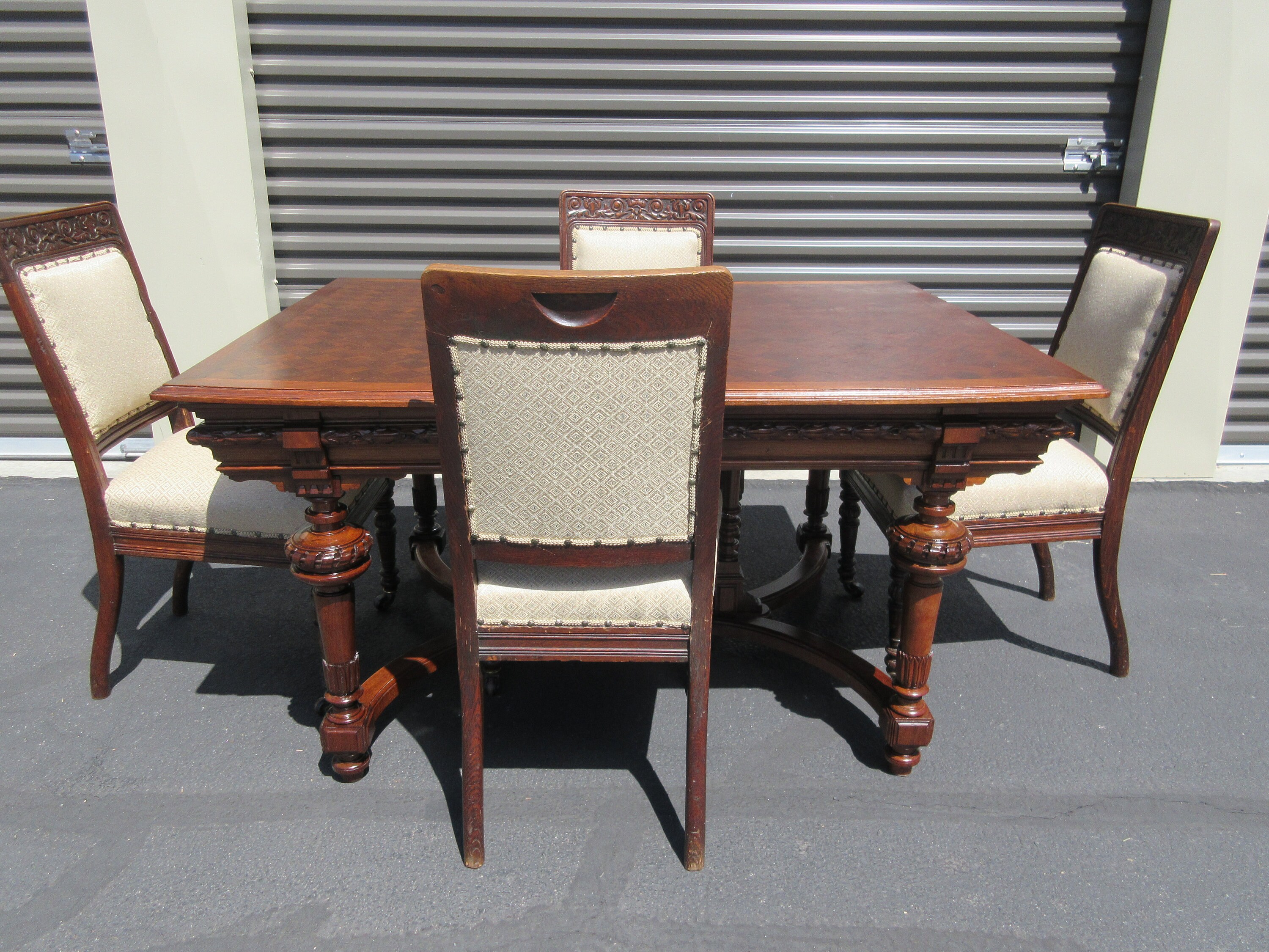 Antique Marquetry Dining Room Table And Four Chairs Etsy