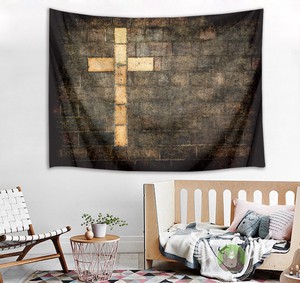 Rustic Vintage Old Brick Wall Cross Tapestry Wall Hanging Living