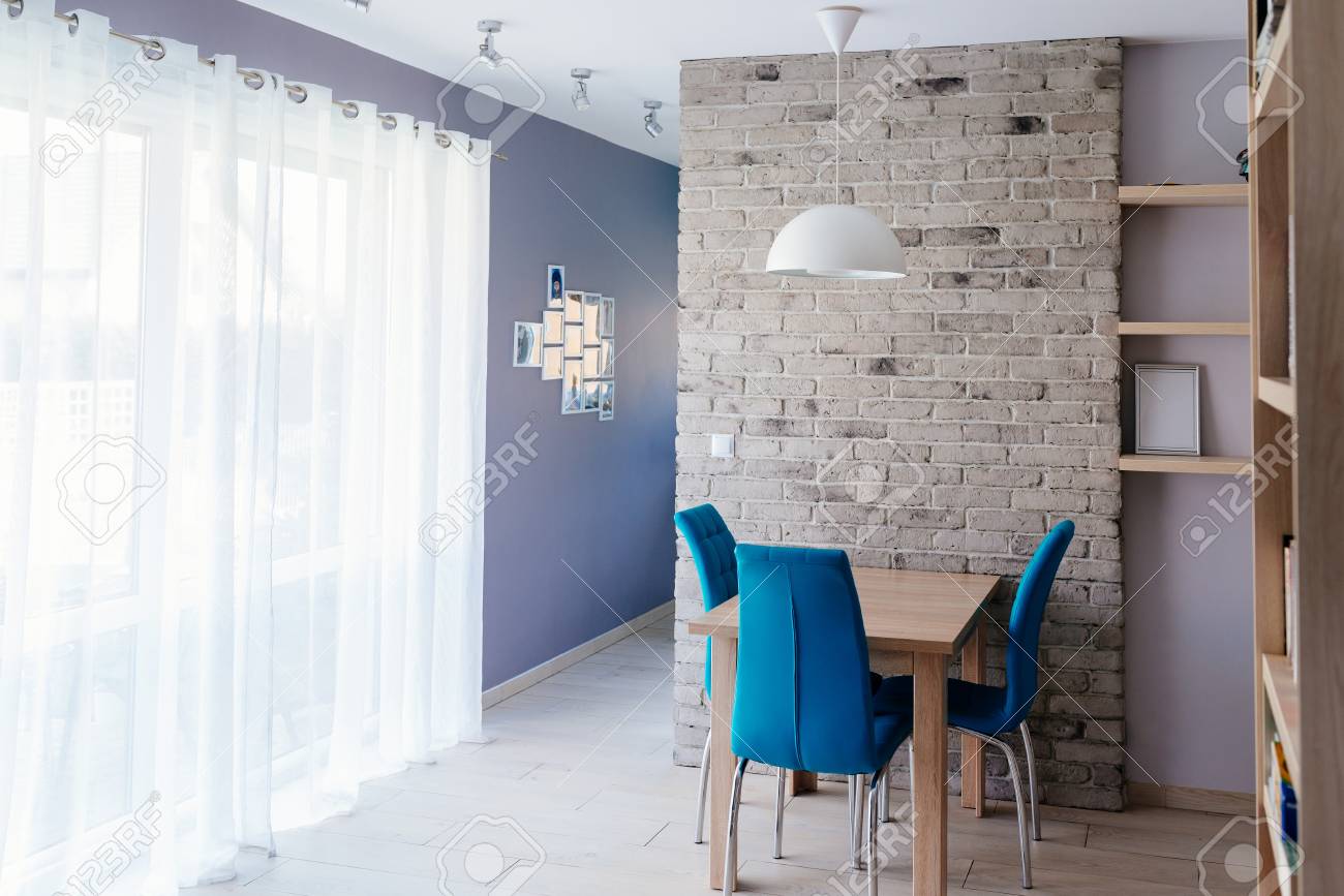 Modern Dining Room Grey Brick Wall Stock Photo Edit Now 529128307