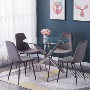 Set 4 Of Grey Velvet Fabric Dining Chairs Metal Legs Living Room