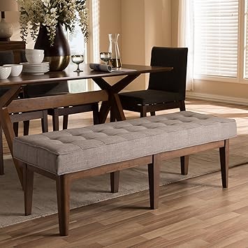 Amazon Com Button Tufted Bench In Light Gray And Walnut Brown