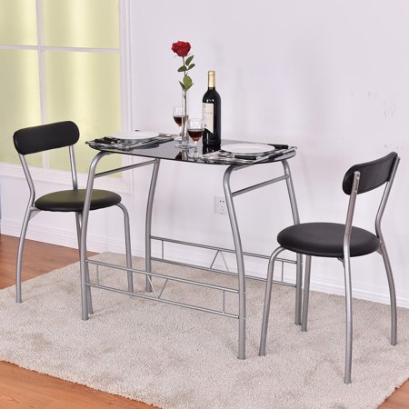 Costway 3 Pc Bistro Set Dining Room Breakfast Chairs Tempered