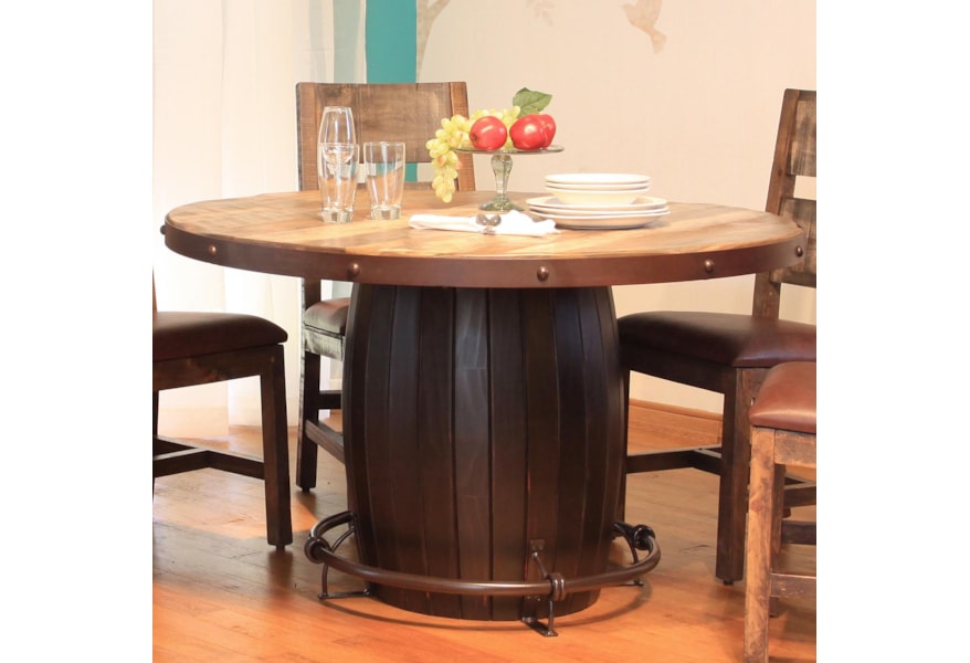 If 900 Antique Round Dining Table With Barrell Base And Iron