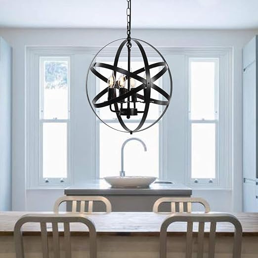 Rustic Style Globe Shade Hanging Light Metal And Wood 4 Lights