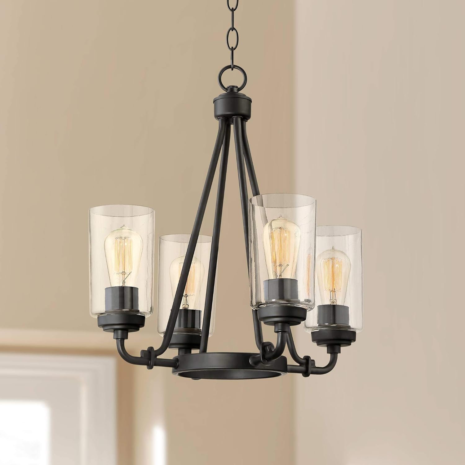Rhett Black Chandelier 18 Wide Rustic Clear Glass 4 Light Fixture