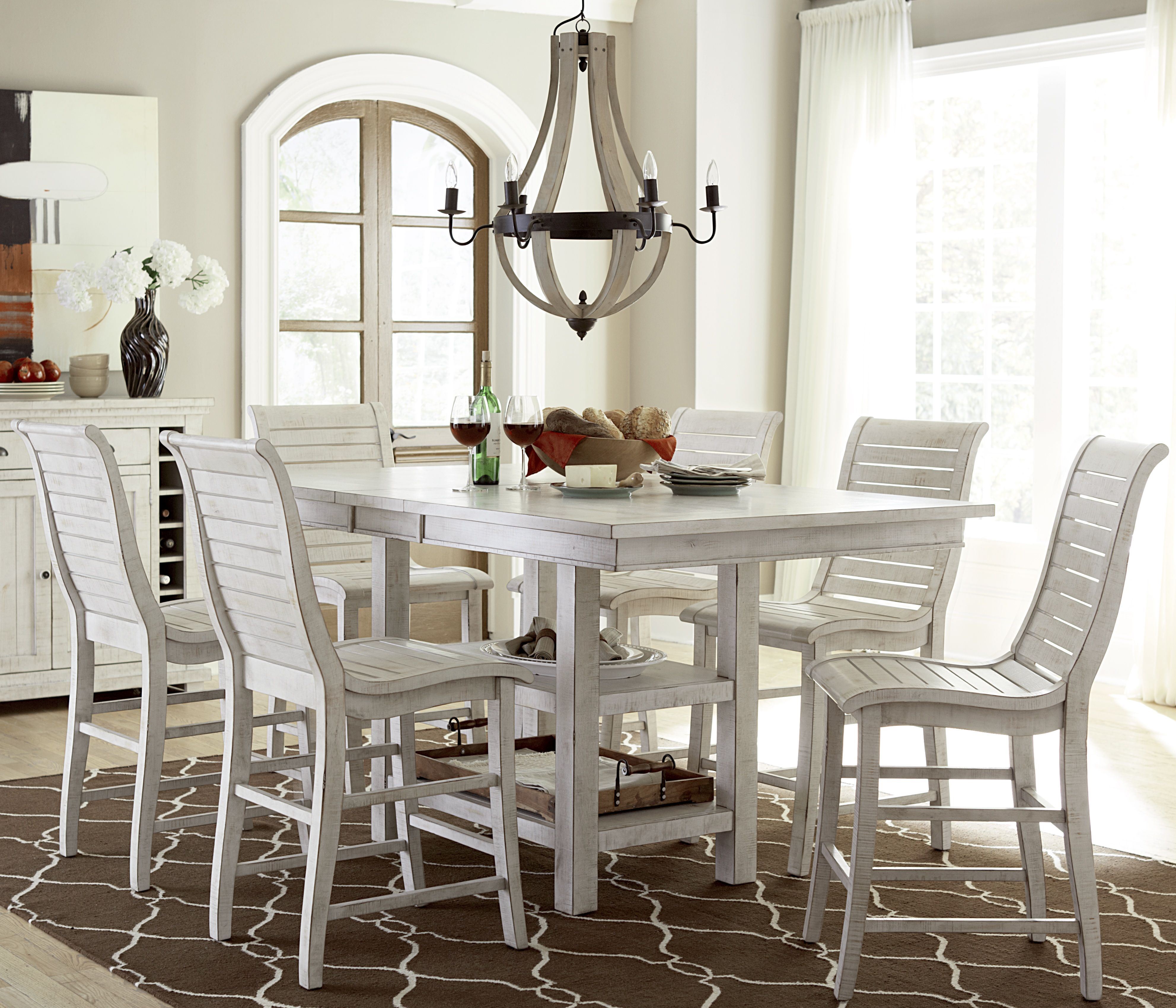 Willow Distressed White Rectangular Counter Height Dining Room Set