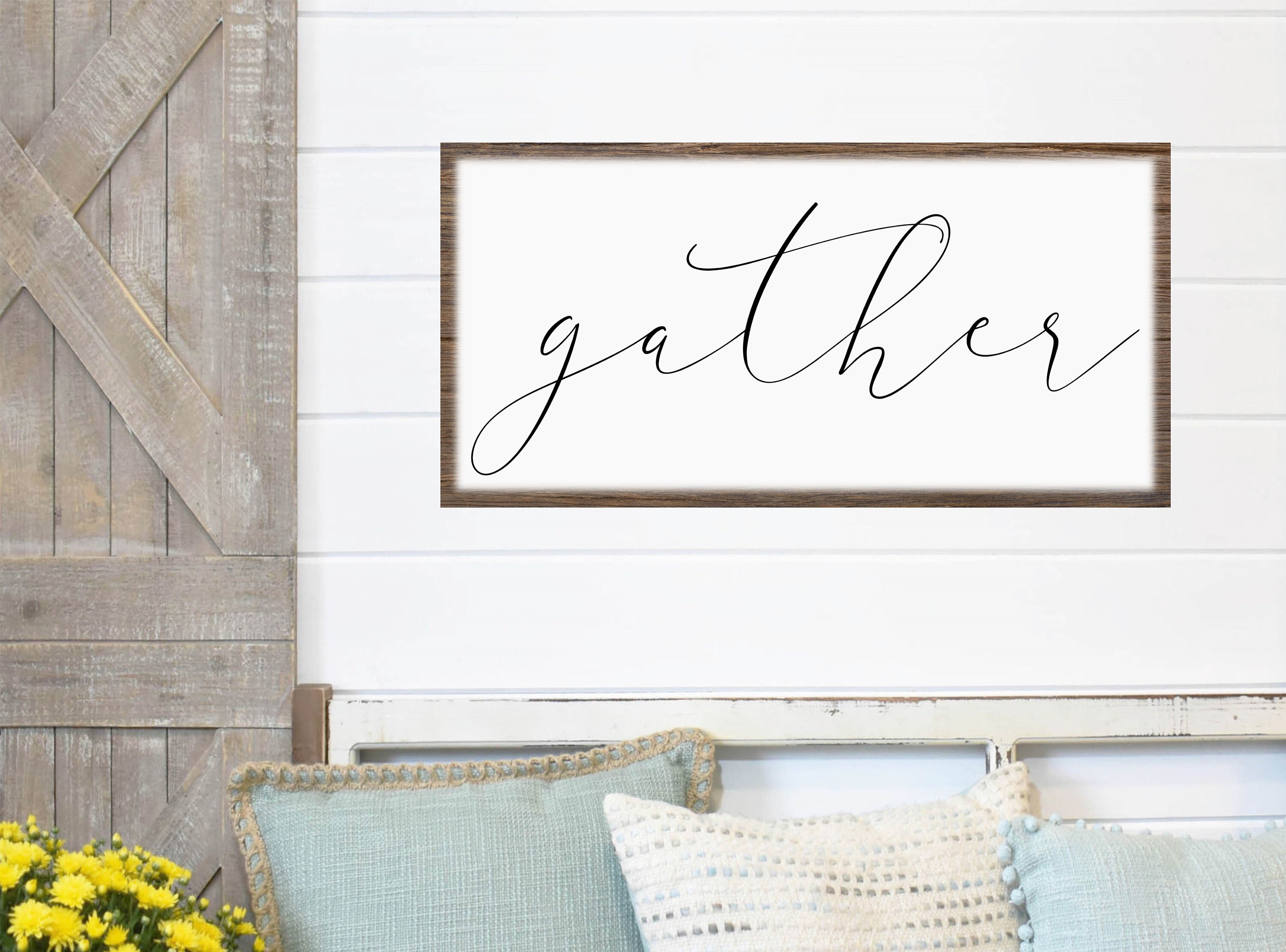 Items similar to gather sign large wall art kitchen decor fixer upper style wood sign family room sign handpainted farmhouse chalkboard style on etsy. This dining room decor dining room ideas dining room dining room table dining room table centerpiece ideas dining rooms dining room design is the perfect addition to any dining table space. Gather sign rustic gather sign wood gather sign large gather sign dining room signs dining room decor fixer upper style 355 x 12 see more.