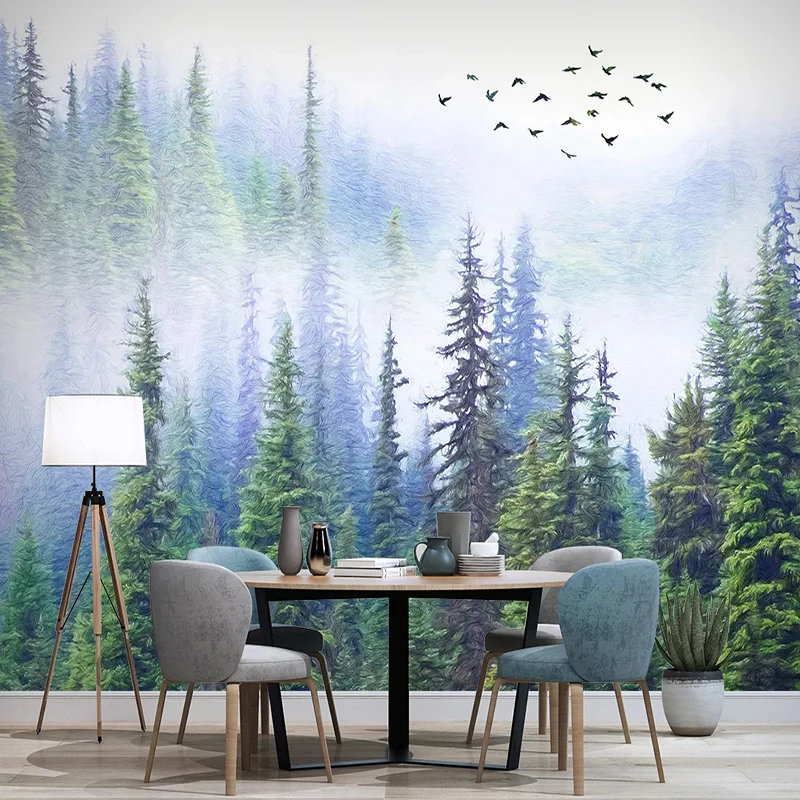 Drop Shipping Custom Mural Wallpaper Hand Painted Bird Cloud And