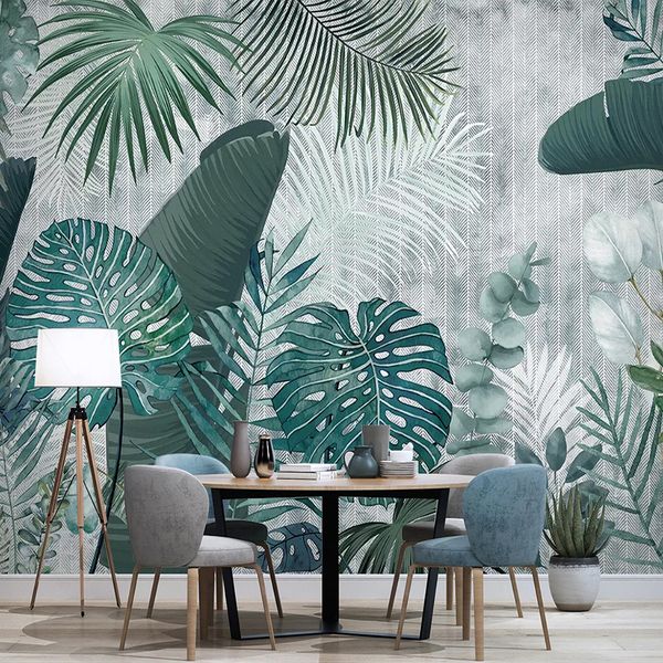 Custom Photo Wall Paper 3d Nordic Hand Painted Tropical Plant