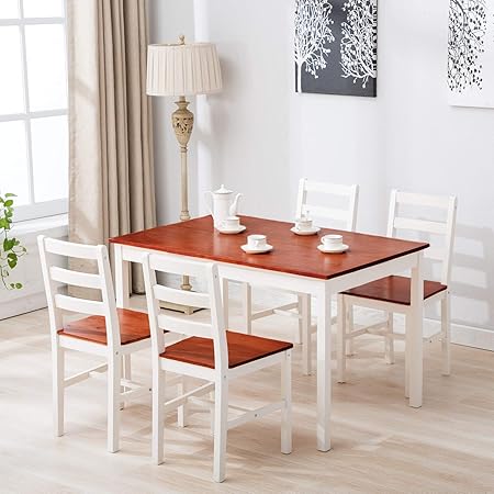 Mecor Dining Table And Chairs Set 4 Classical Solid Pine White