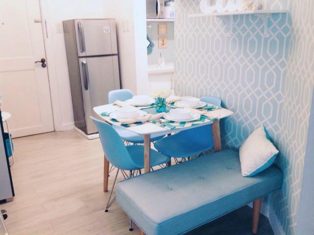 Upholstered Bench And Round Table With Cute Chairs This Is
