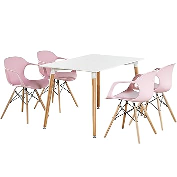 P N Homewares Alecia Dining Set White Table Pink Chairs