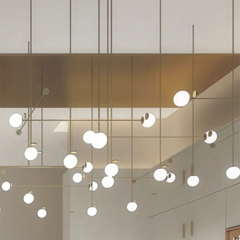 Simple Line Led Chandelier Diy Combination Glass Ball Hanging