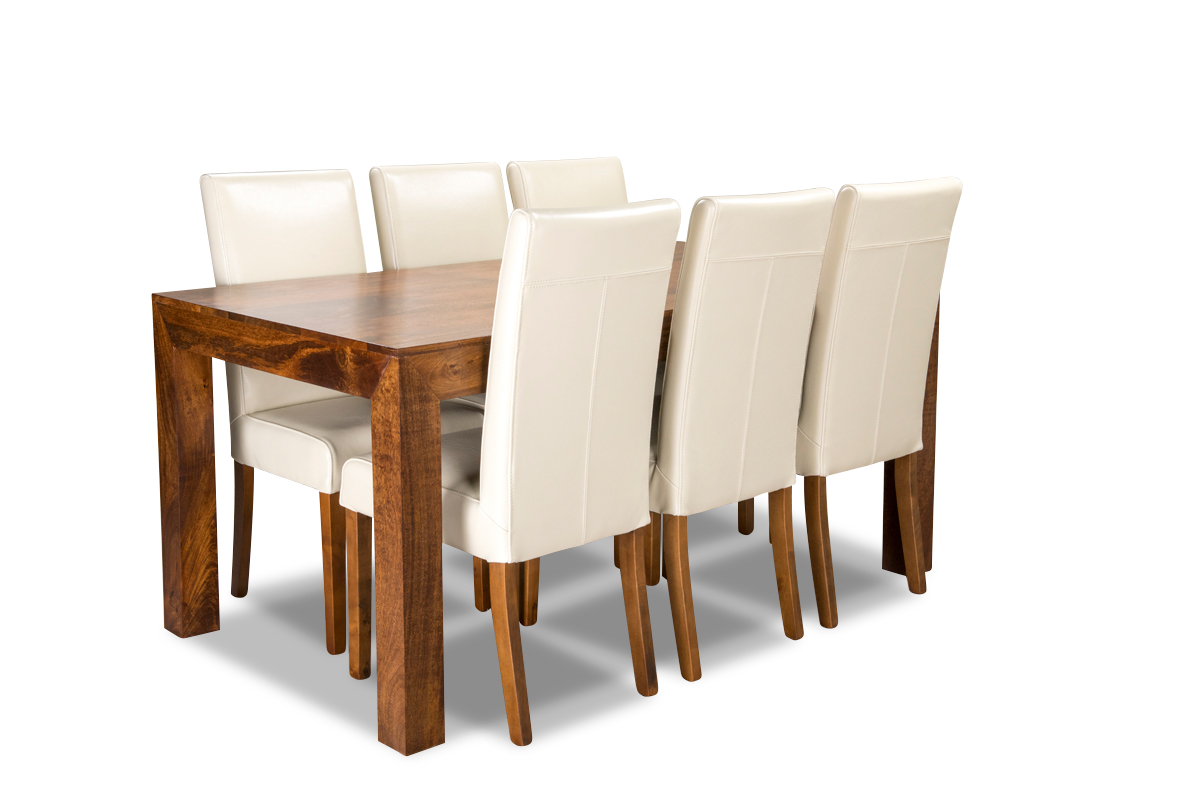 Dakota Mango 180cm Dining Table And 6 Cream Leather Dining Chairs