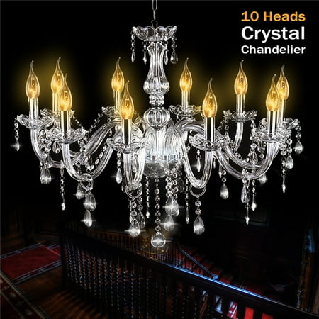E12 10 Lights Clear Crystal Chandelier Pendant Ceiling Light