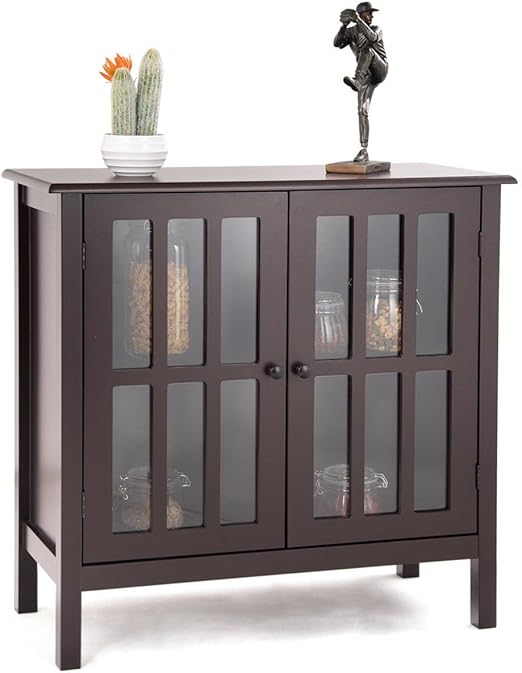 Amazon Com Custpromo Storage Buffet Cabinet Glass Door Sideboard