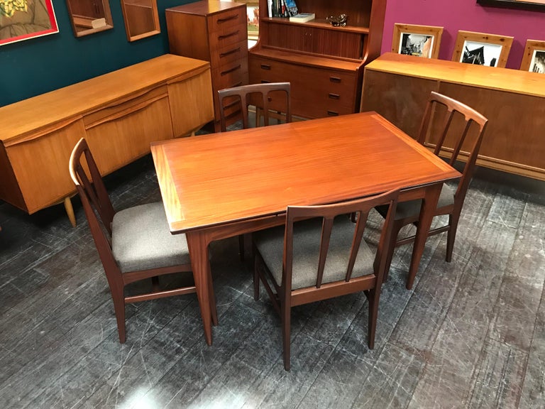 Extending Midcentury Afrormosia Dining Table With 4 Chairs By
