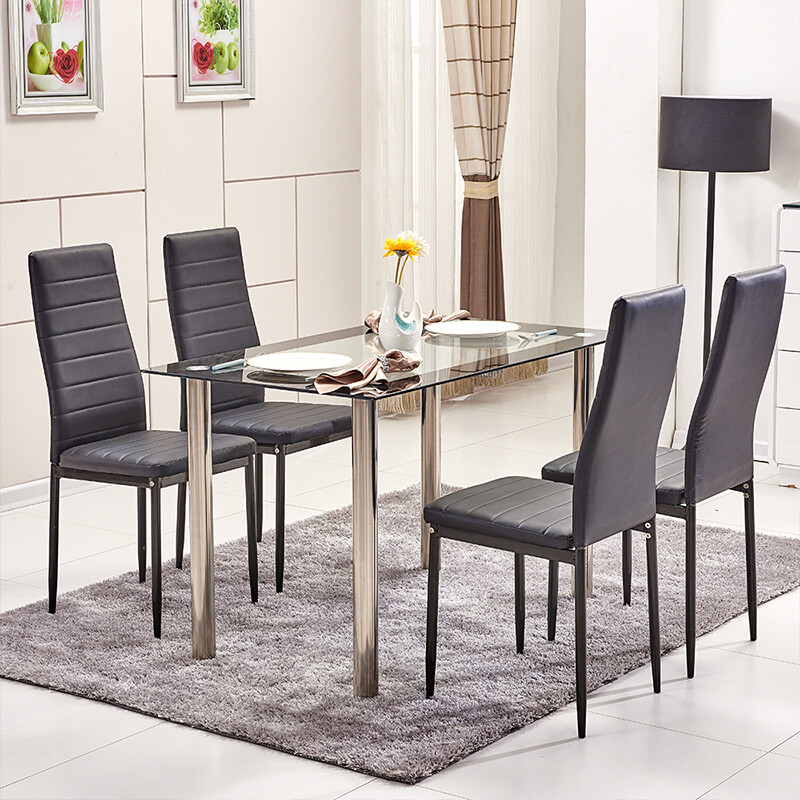 Modern Dining Set Glass Table W 4 High Back Chairs Metal Legs