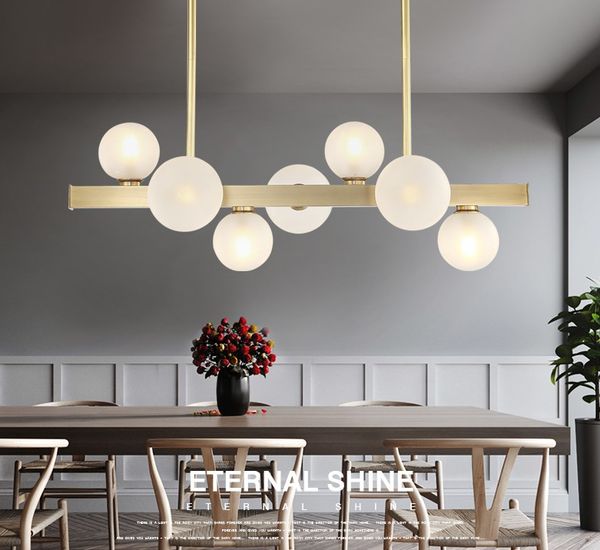Nordic Glass Beans Led Chandelier Lighting Lustre Copper Dining