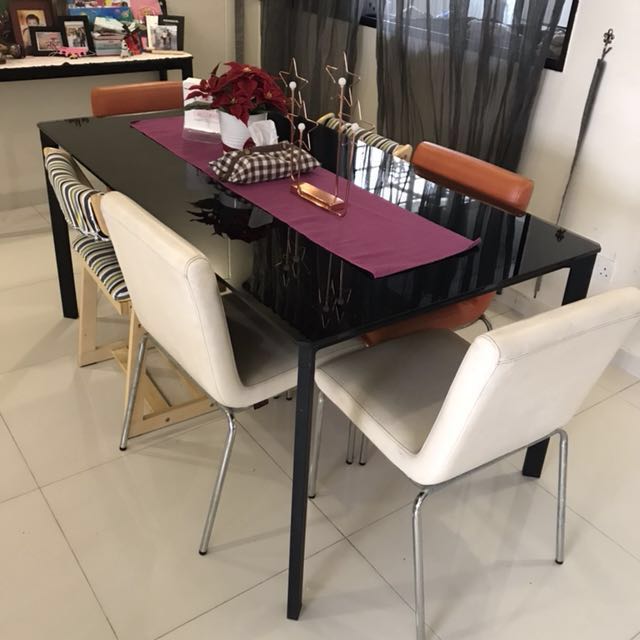 Mondi Tempered Glass Dining Table And Genuine Leather Chairs