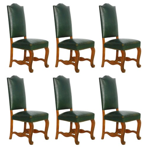French Green Leather Dining Chairs 1920s Set Of 6 For Sale At Pamono