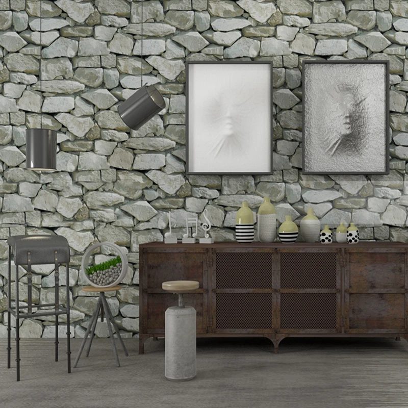 Retro 3d Stereo Imitation Rock Brick Stone Wallpaper Roll For Wall