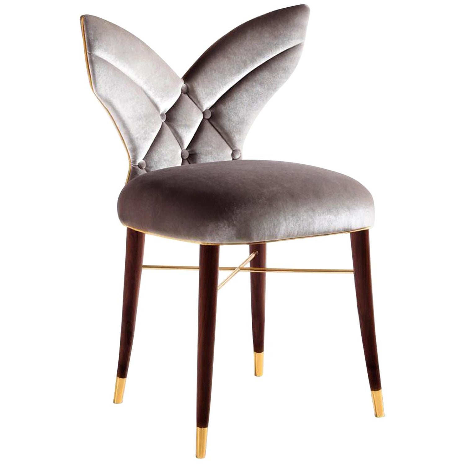 Luxury Los Angeles Silver Grey Velvet Upholstered Dining Or