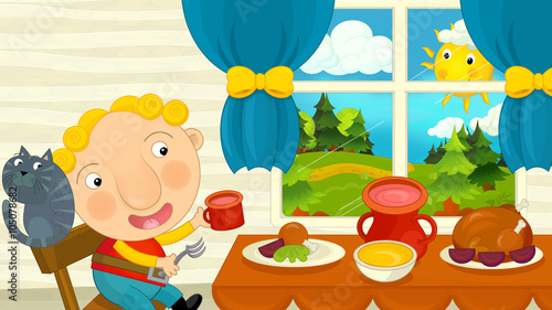 Cartoon Boy Eating In The Dining Room Illustration For The