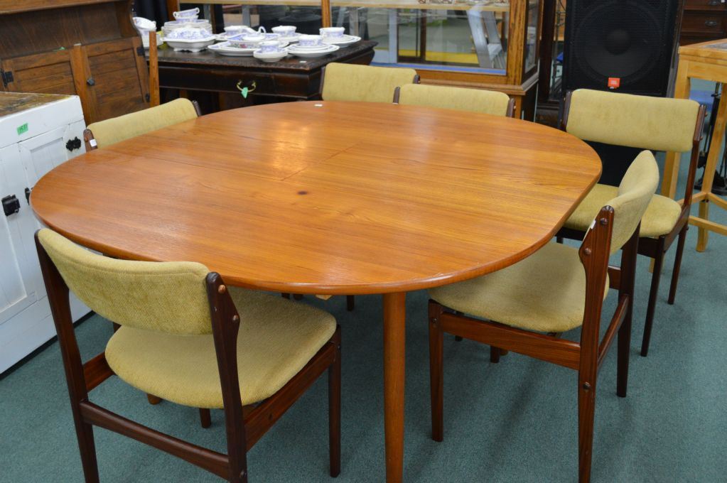 A Mid Century Modern Teak Dining Table With Hidden Leaf Storage