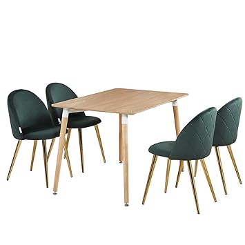 Aria Wooden Dining Table With 4 Emerald Green Velvet Dining Chairs