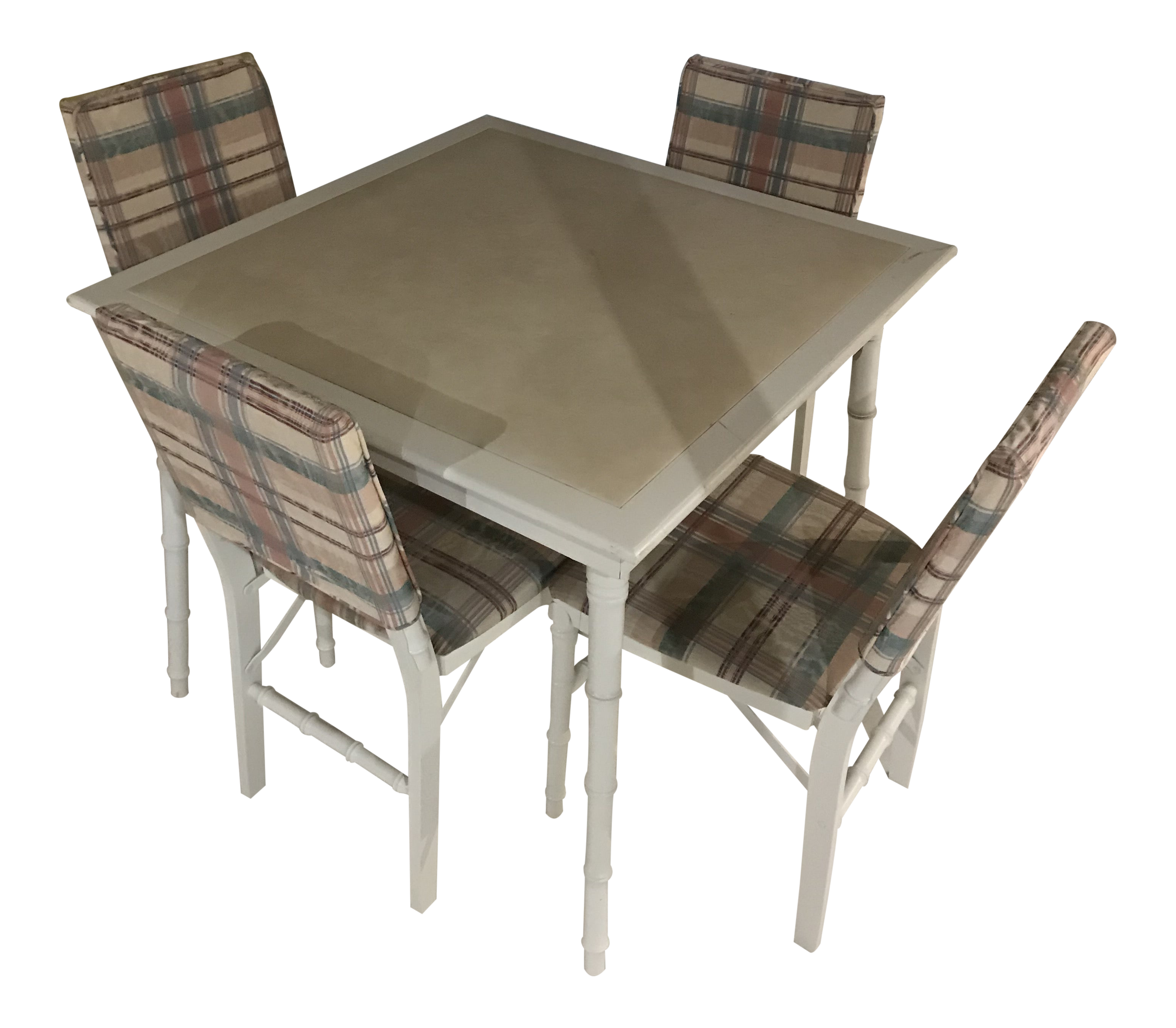Vintage Chinoiserie White Stakmore Bamboo Card Table And Four