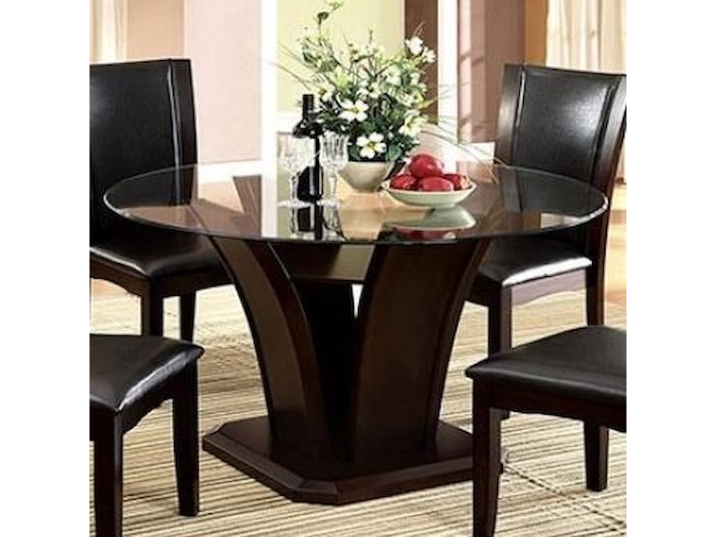 Manhattan I Ii Transitional Round Dining Table With Glass Top