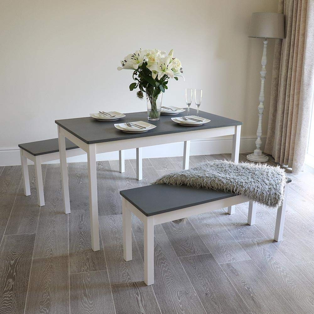 Wido White Grey Pine Wood Dining Set Table Bench Set Kitchen