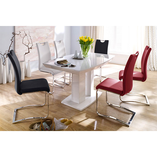It creates a fabulous contemporary look in any modern house or apartment. High gloss dining room furniture. Zele furniture range from black red white was designed to allow you to create a practical yet uniquely stylish room which draws everyones attention with sleek white high gloss fronts and a combination of wotan oak effectthe clean crisp lines and high gloss finish add an understated elegance to any modern interior.