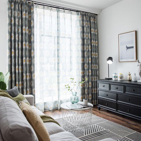2020 Pastoral Blackout Printing Sunflower Shading Curtains For