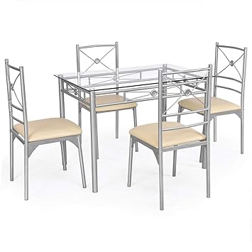 Amazon Com Lordbee 5 Pcs Dining Room Tempered Glass Table Chairs