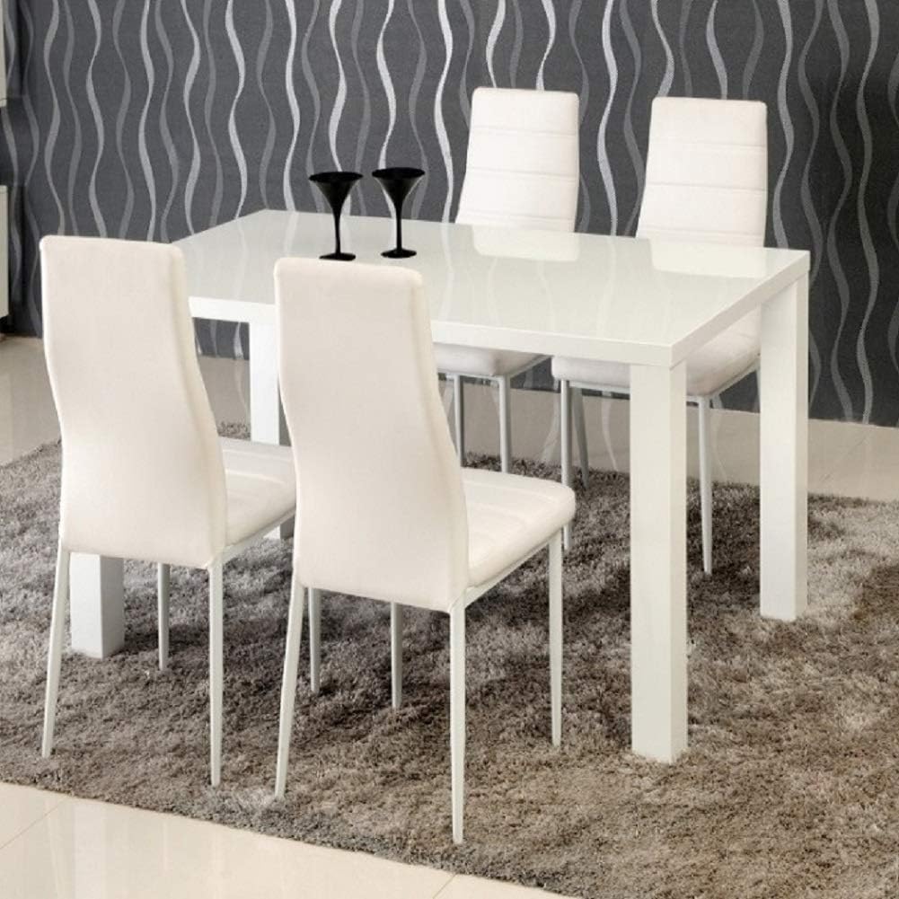 Tukailai Contemporary White High Gloss Dining Table Breakfast