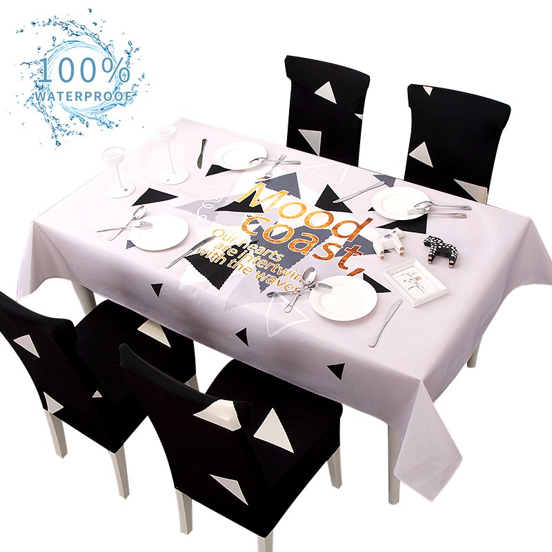 Waterproof Table Cloth For Kitchen Geometric And Flower Design