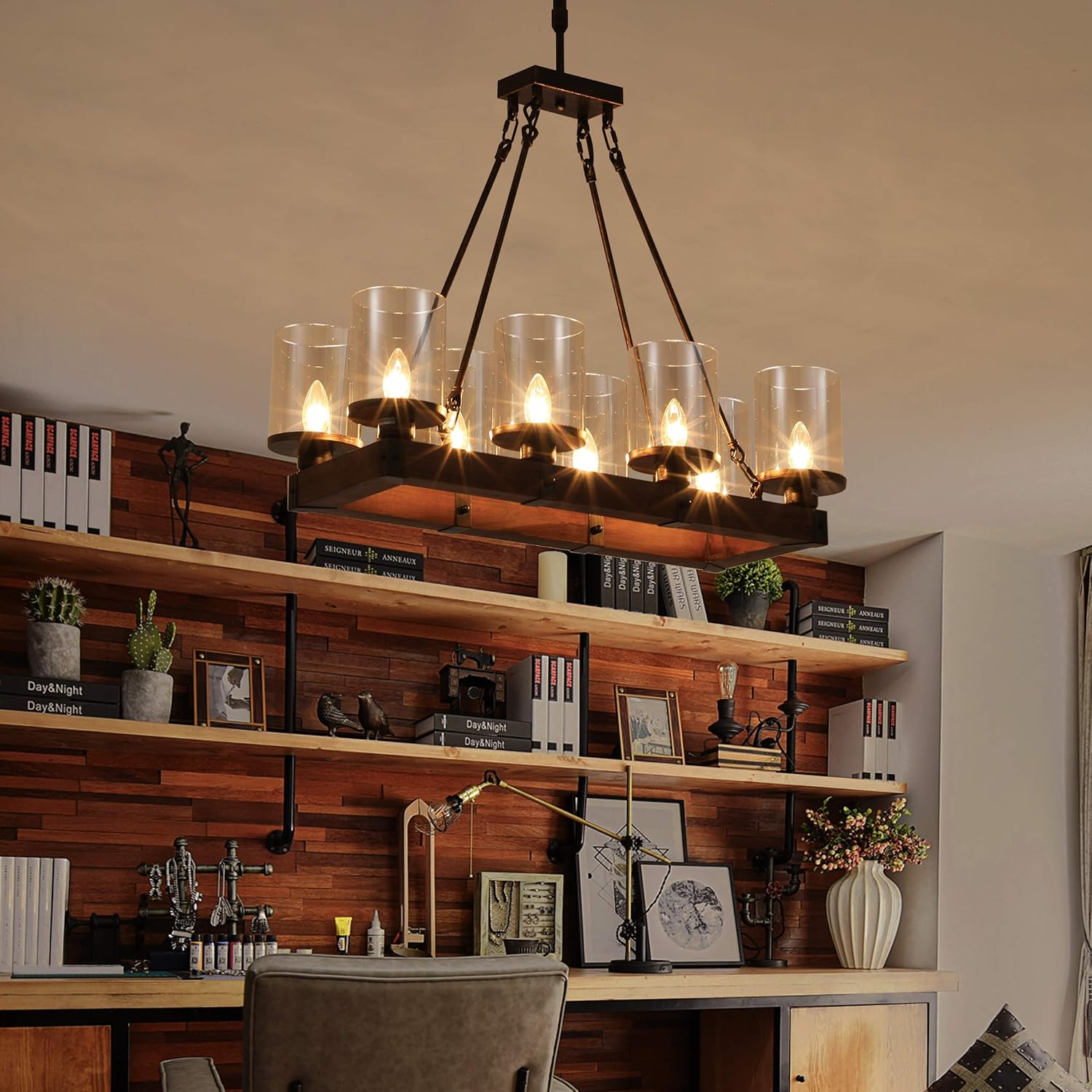 Wooden Farmhouse Kitchen Island Light 8 Light Candle Pendant