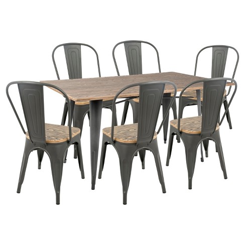Oregon 7 Piece Industrial Farmhouse Dining Set Gray Brown