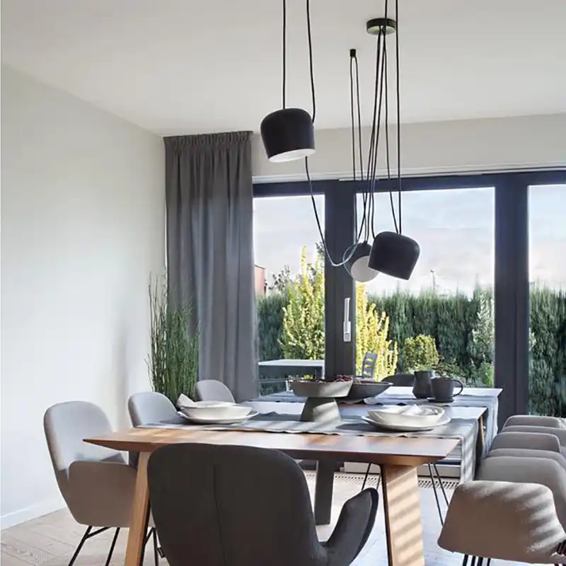 If you want to impress guests when hosting formal dinners pendant drum lights are bold dining room lighting ideas to take note of. The dining room table in this west village loft is poured concrete and steel the 1960s chairs by steiner are covered in a castel fabric and the light fixture from the same era is by barovier toso. Long narrow spaces like formal dining areas and corridors look outstanding with multiple evenly spaced drum pendants.