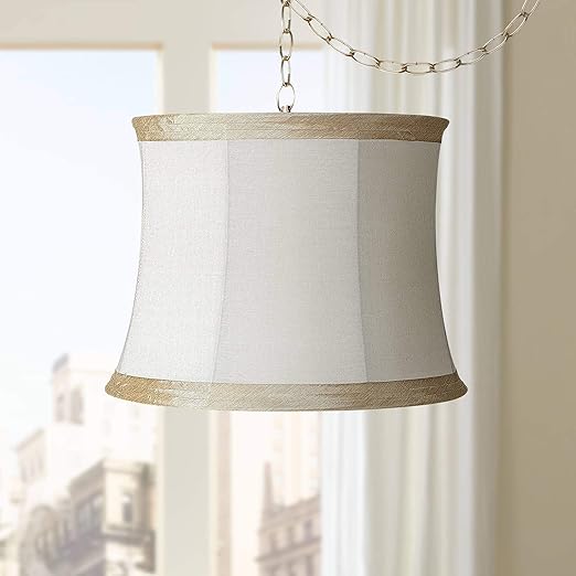 Antique Brass Plug In Swag Pendant Chandelier 16 Wide Ivory Linen