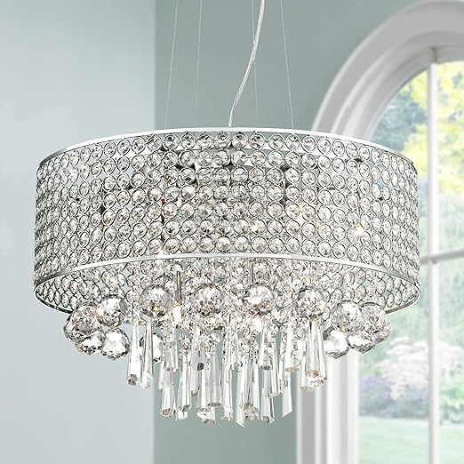 Elva Chrome Drum Pendant Chandelier 19 Wide Beaded Crystal Drum