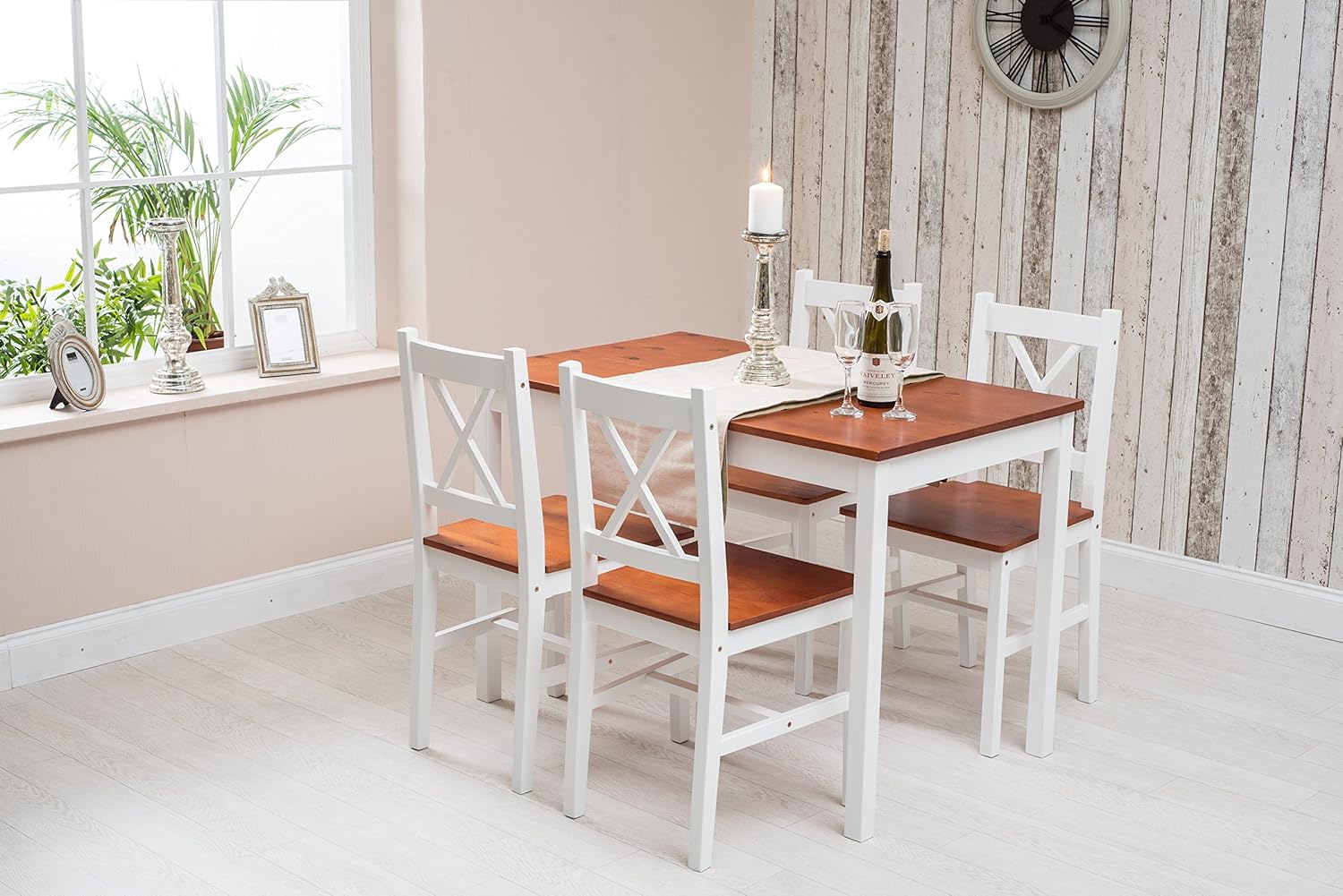 Furnituremaxi Wooden Dining Table And 4 Chairs Set Honey White