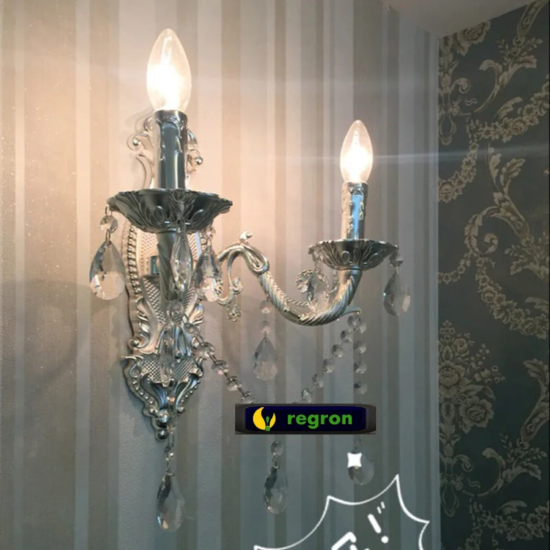 European Candle Crystal Wall Lamp Living Room Dining Room Silver